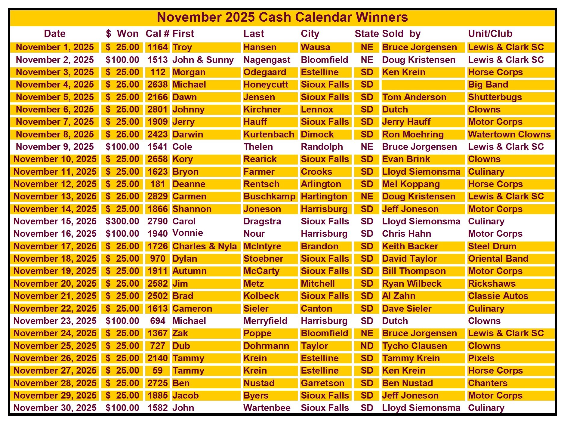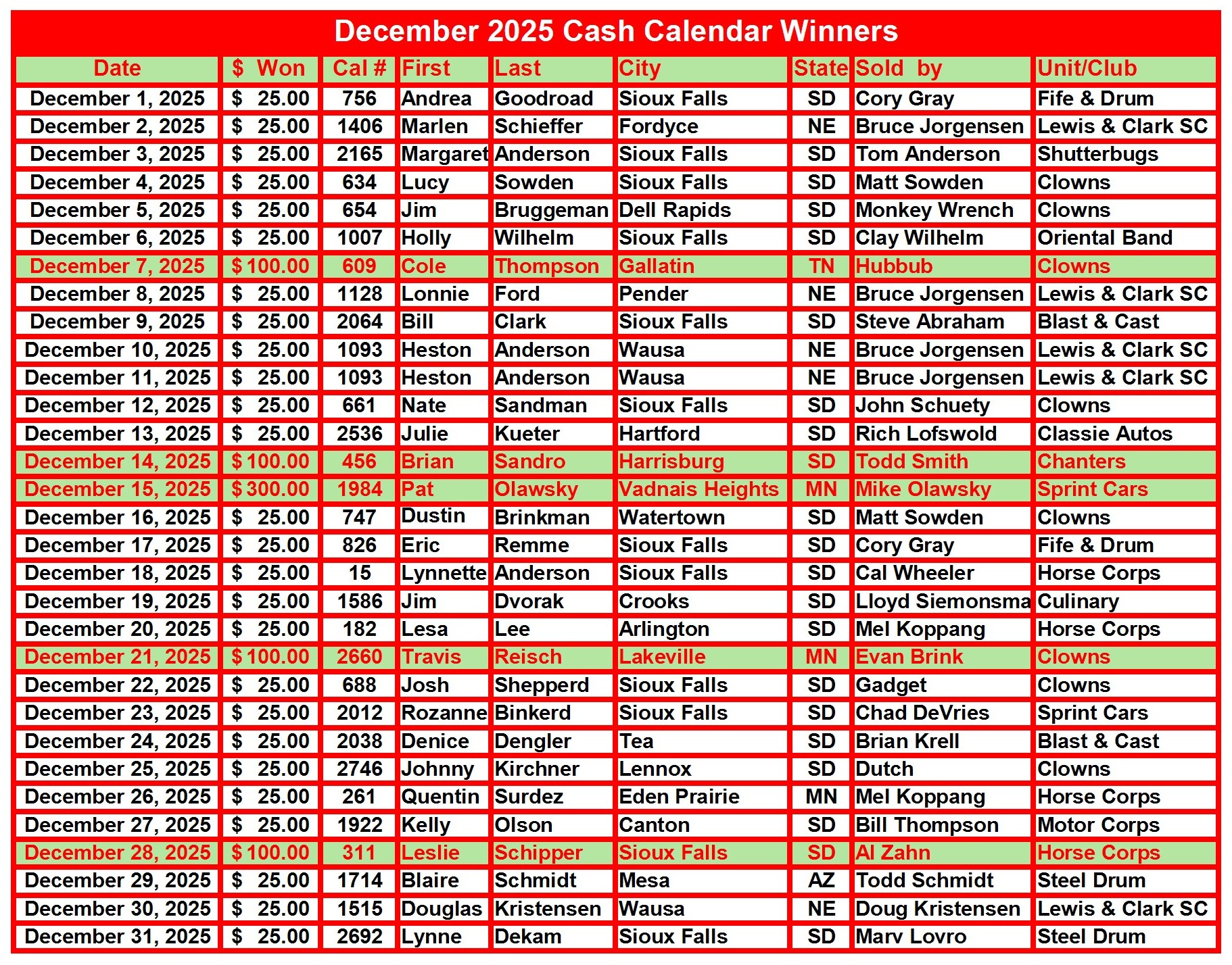The Microsoft random formula is used to select a random number between 1 and 3,000 for each day of the year. Once all the numbers are selected by the computer for the month, the four digit random numbers are matched with the master list containing the names of the calendar owners and sellers. The complete winners list is then posted to the website and appears in the next issue of the Cactus.